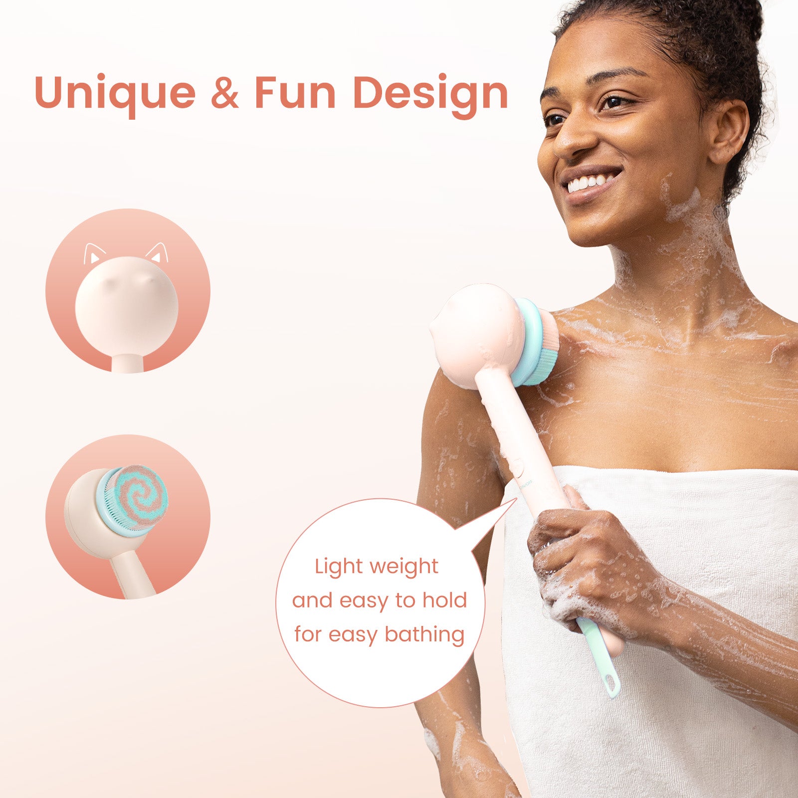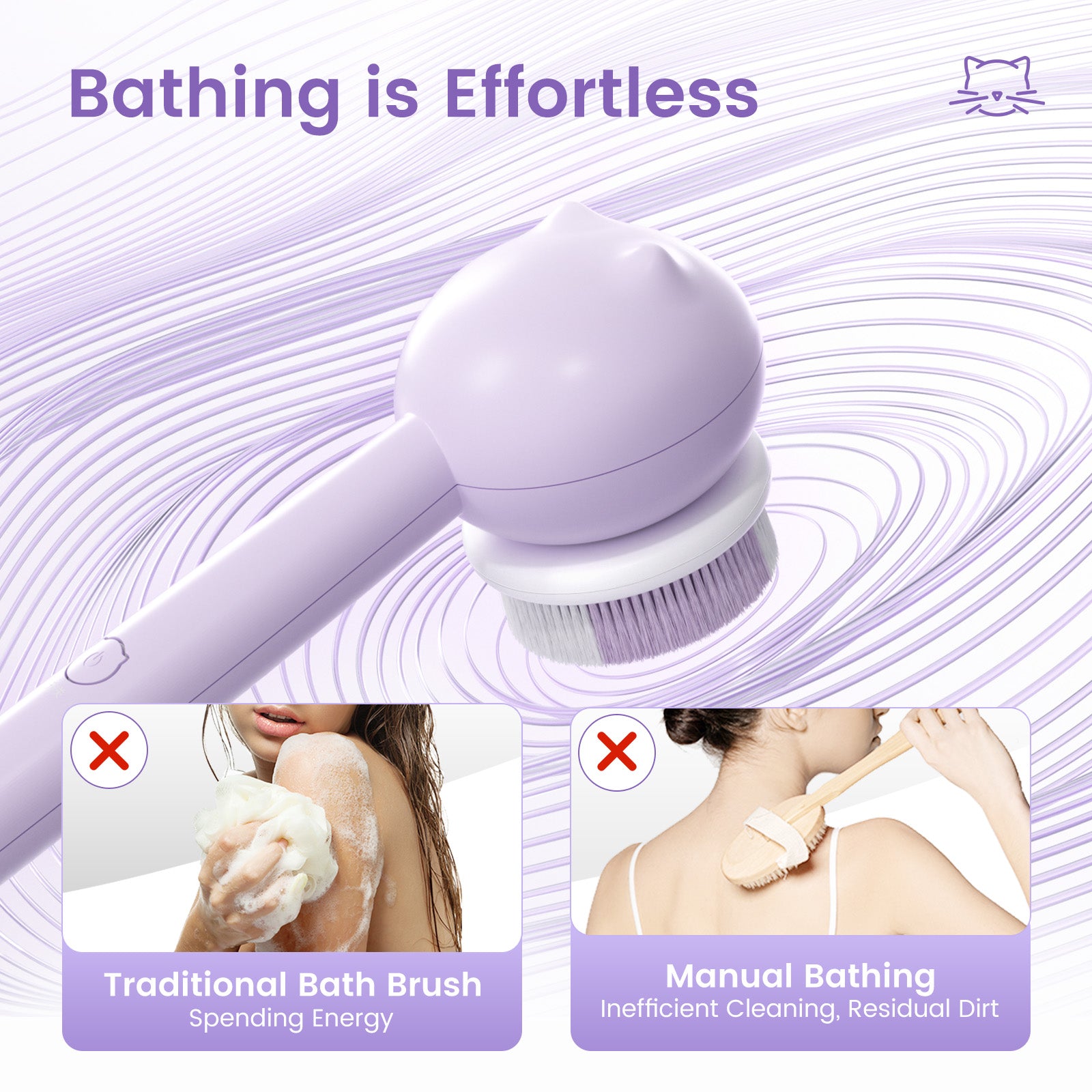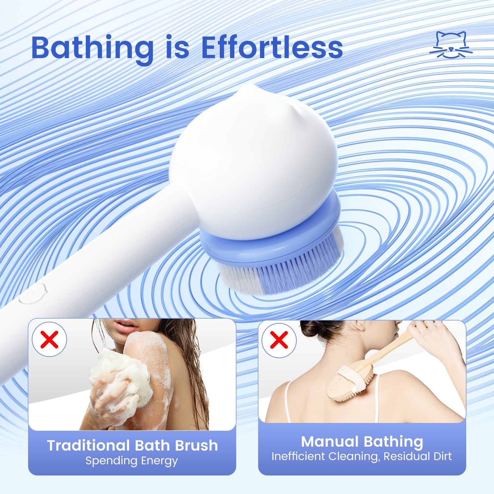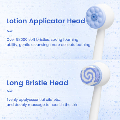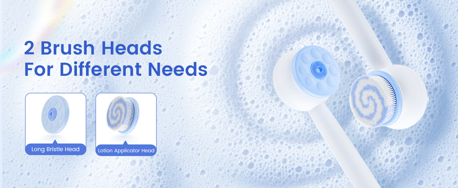 Our body brush features high-quality PBT material for the brush head, which does not require replacement. To clean the brush head, simply rinse it with warm water. If there’s any soap buildup, turn on the device and gently clean the bristles with your fingers.
