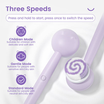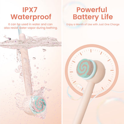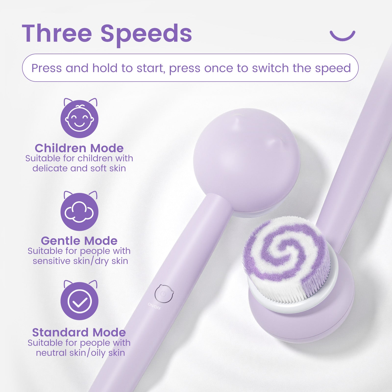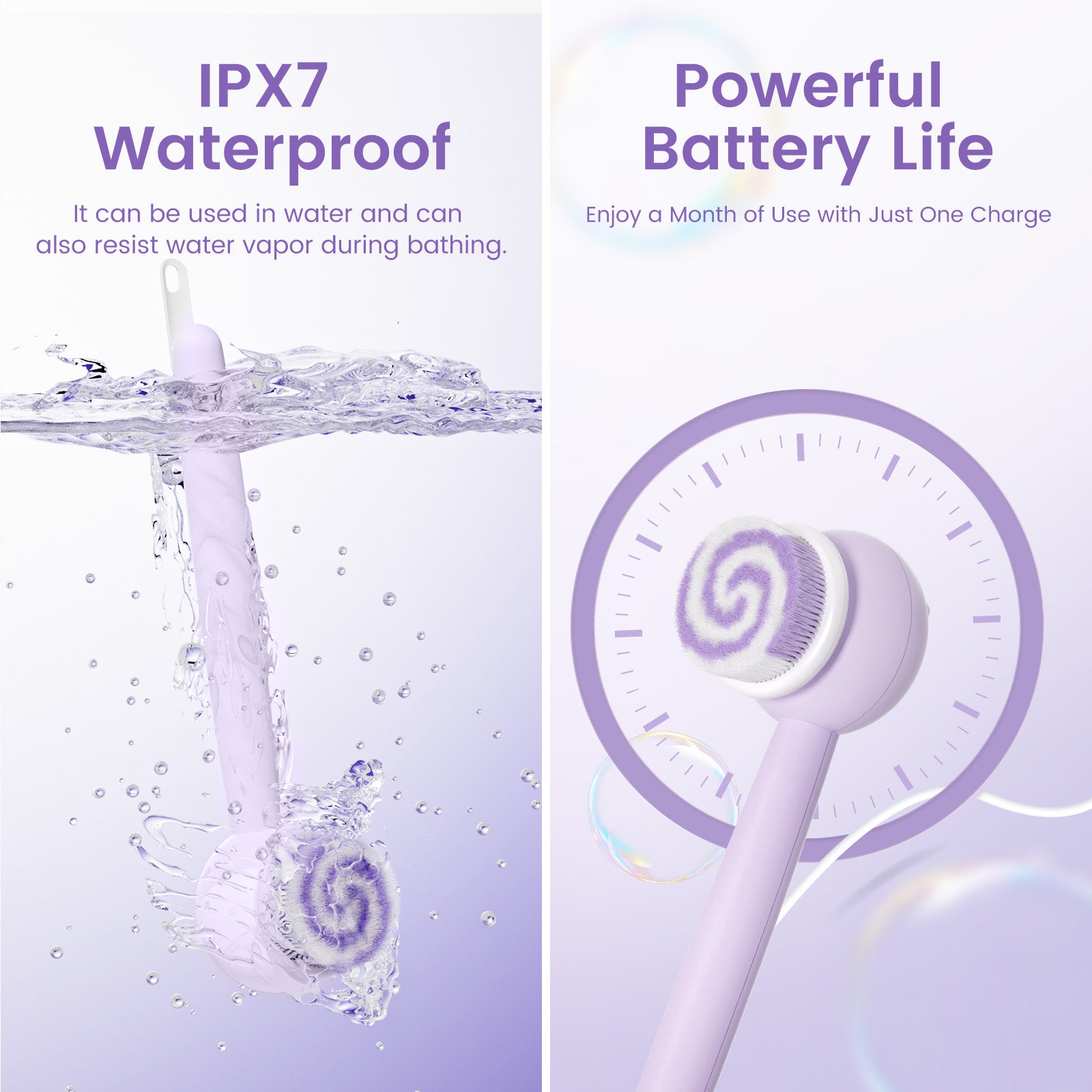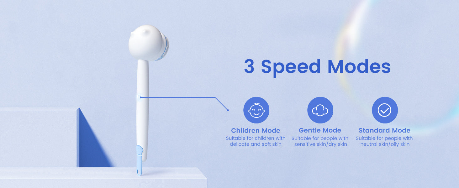 This electric body brush features IPX7 waterproof protection, making it safe for use in the shower. It includes two interchangeable brush heads and offers three adjustable speed modes (Gentle, Medium, and Strong), allowing you to customize your cleansing routine.
