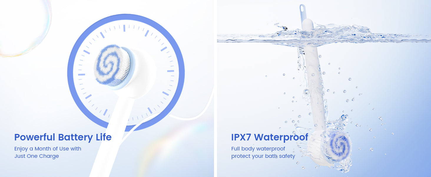 Yes, the electric bath brush is IPX7 certified, making it fully waterproof and safe for use in the shower or bath.